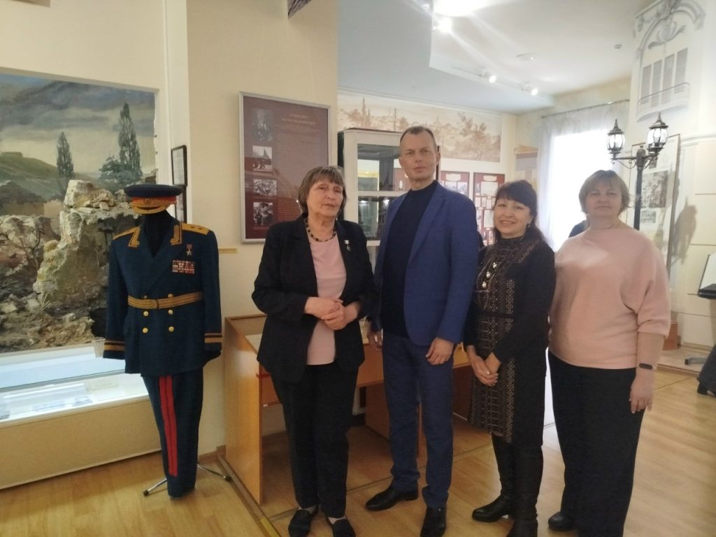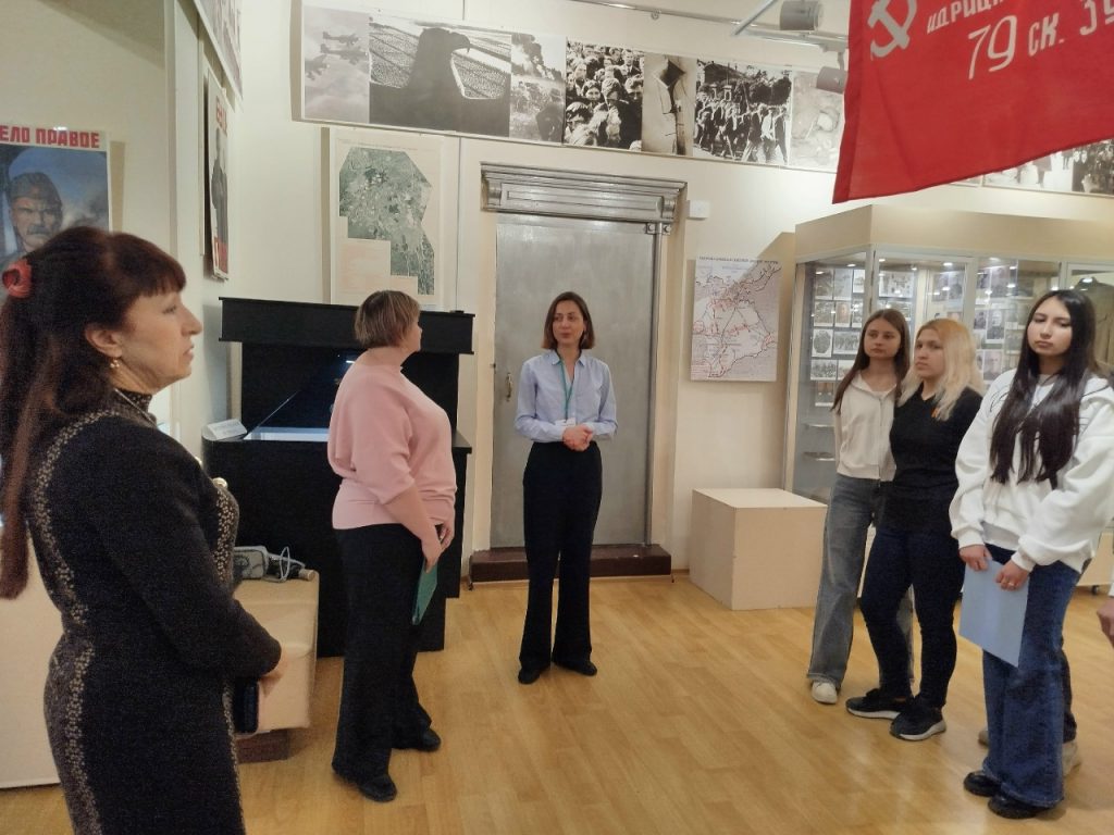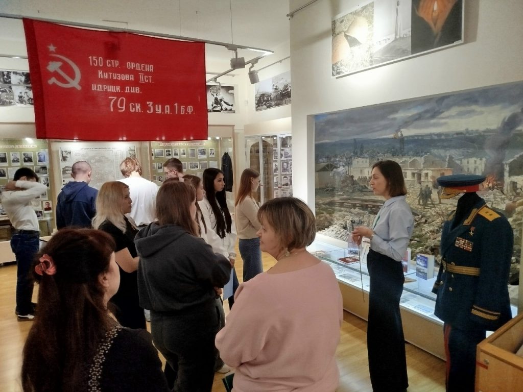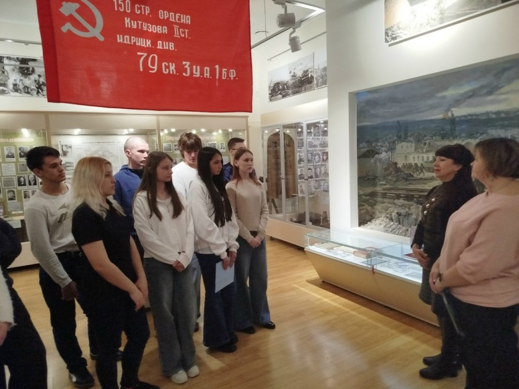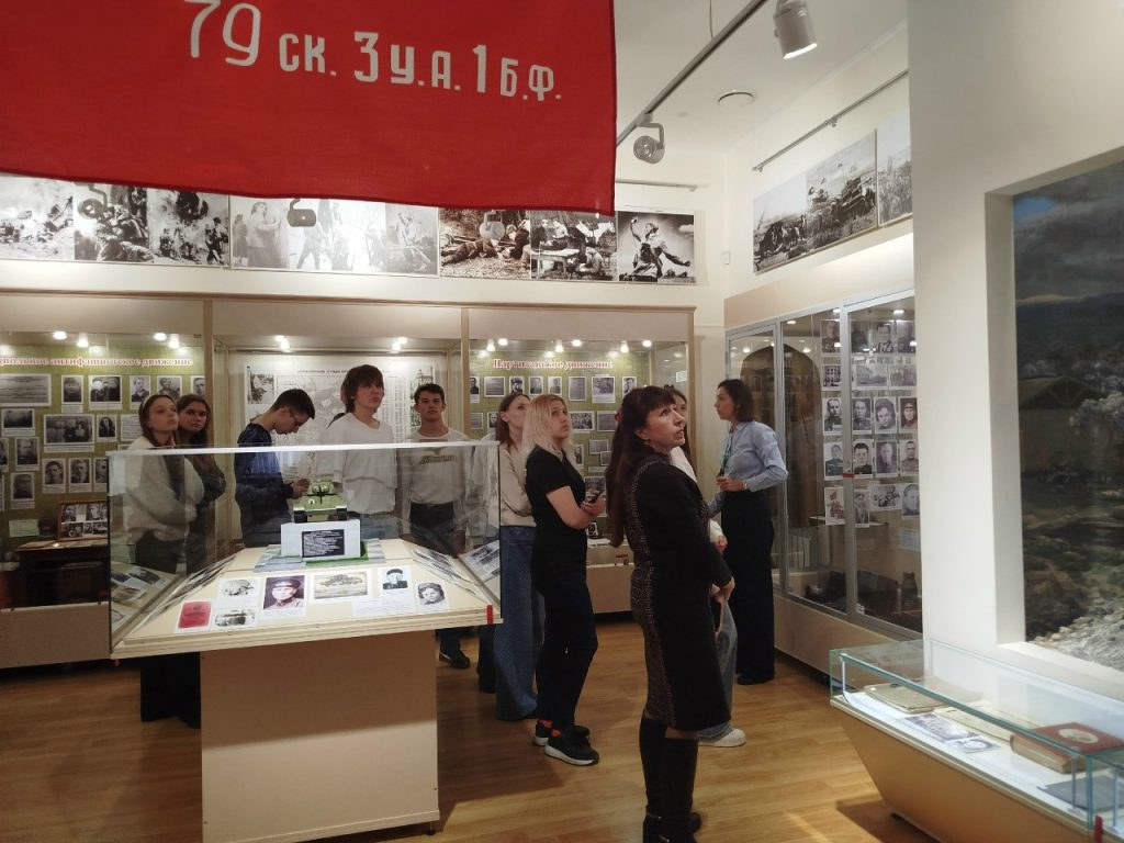 Совместно с МБУК ЦБС для взрослых МОГО Симферополь библиотекой-филиалом № 7 им. Т.Г. Шевченко сотрудники музея провели мероприятие «Давайте, люди, не забудем великий подвиг земляков». Присутствовали студенты ГБПОУ РК «СПК им. Л.С. Голицына». С приветственным словом к присутствующим обратилась ведущая мероприятия начальник отдела по научно-просветительской работе музея Яковлева Татьяна Владимировна. Заведующая библиотекой Каржавина Наталья Васильевна познакомила гостей с литературой по теме и рассказала о важности этого праздника. После официальной части Татьяна Владимировна провела увлекательную и познавательную экскурсию по залу «Симферополь и симферопольцы в годы Великой Отечественной войны». После экскурсии к участникам обратился внук легендарного Героя Советского Союза Горишного В.А., член Совета региональной национальной автономии украинцев Крыма, член Ассамблеи народов России, Горишний Василий Александрович. Он подробно рассказал о подвигах и боевом пути своего славного предка.
