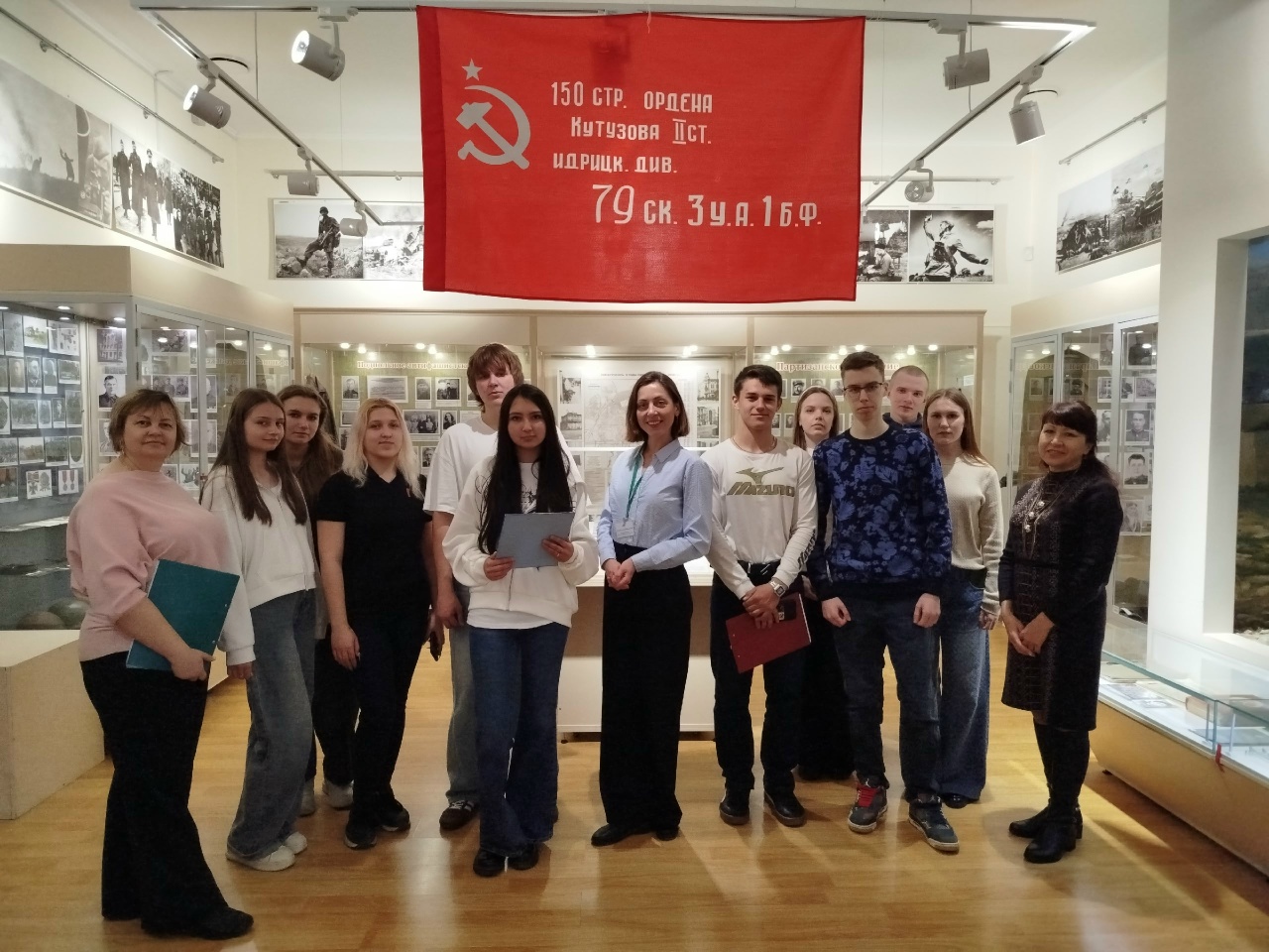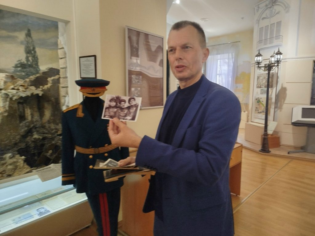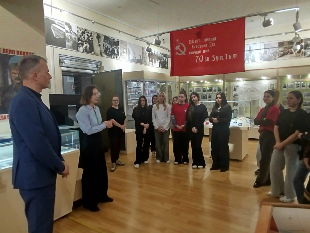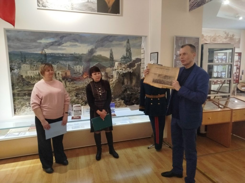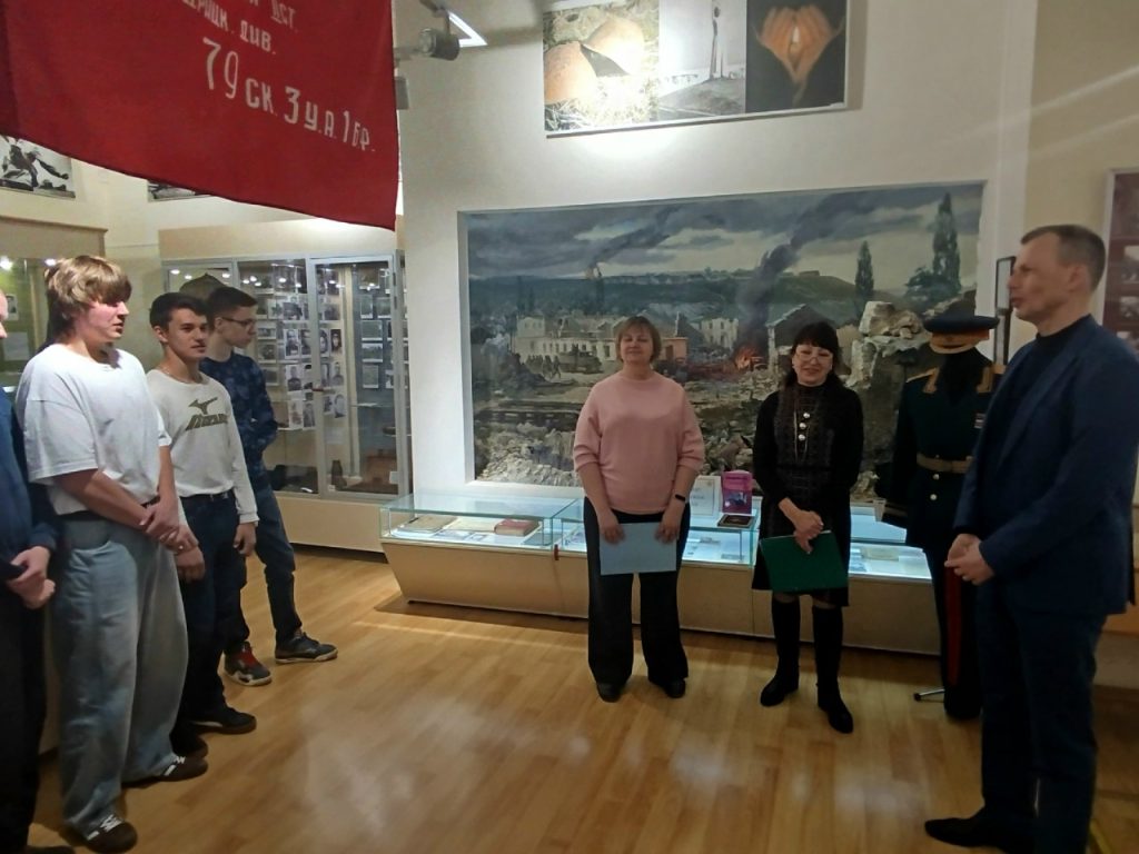 Совместно с МБУК ЦБС для взрослых МОГО Симферополь библиотекой-филиалом № 7 им. Т.Г. Шевченко сотрудники музея провели мероприятие «Давайте, люди, не забудем великий подвиг земляков». Присутствовали студенты ГБПОУ РК «СПК им. Л.С. Голицына». С приветственным словом к присутствующим обратилась ведущая мероприятия начальник отдела по научно-просветительской работе музея Яковлева Татьяна Владимировна. Заведующая библиотекой Каржавина Наталья Васильевна познакомила гостей с литературой по теме и рассказала о важности этого праздника. После официальной части Татьяна Владимировна провела увлекательную и познавательную экскурсию по залу «Симферополь и симферопольцы в годы Великой Отечественной войны». После экскурсии к участникам обратился внук легендарного Героя Советского Союза Горишного В.А., член Совета региональной национальной автономии украинцев Крыма, член Ассамблеи народов России, Горишний Василий Александрович. Он подробно рассказал о подвигах и боевом пути своего славного предка.